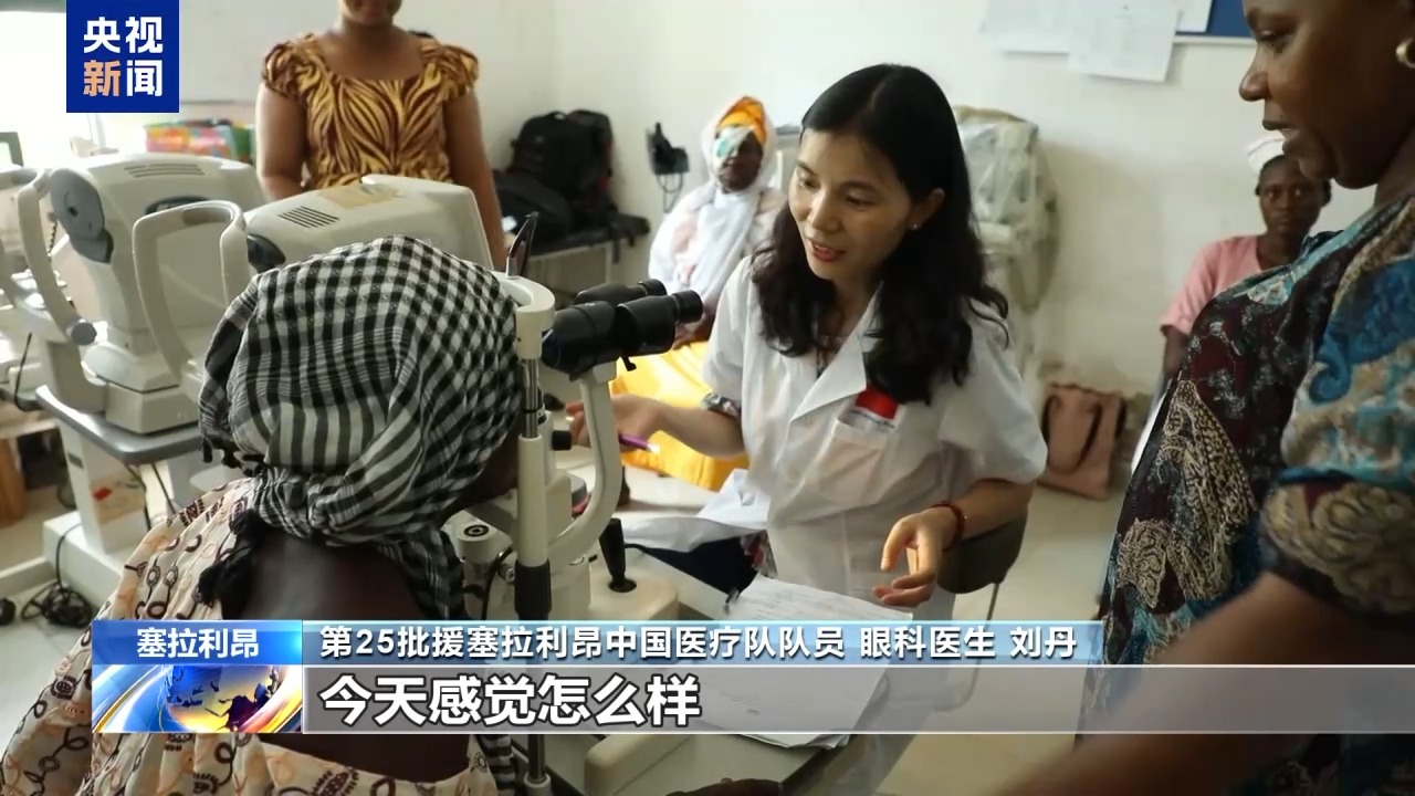 第25批援塞拉利昂中國醫(yī)療隊(duì)隊(duì)員 眼科醫(yī)生 劉丹:今天感覺怎么樣?好了?好多了?讓我檢查一下你的眼睛……手術(shù)效果非常好,過幾天就會好轉(zhuǎn)了。
