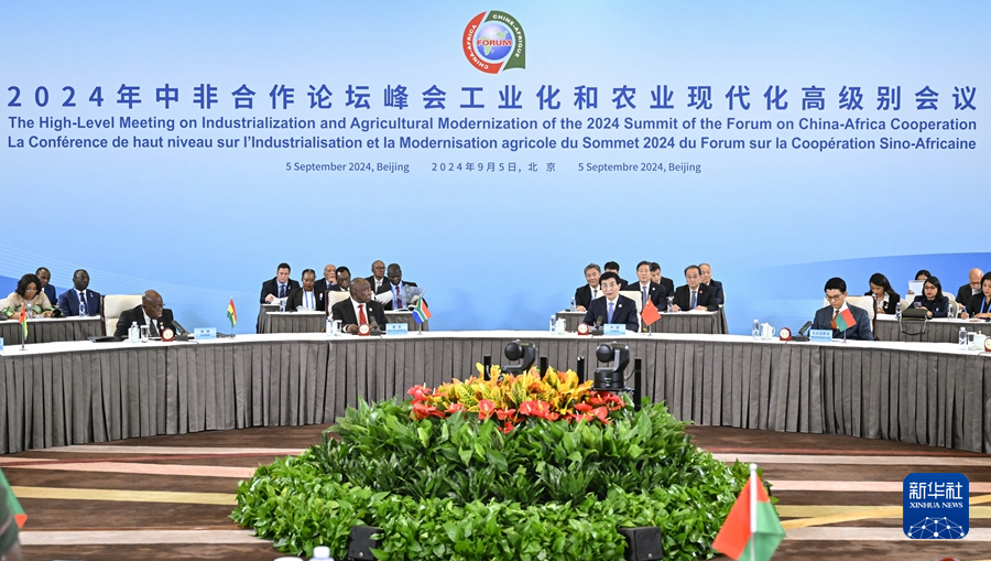 新華社北京9月5日電(記者謝?,?、潘潔)中非合作論壇北京峰會(huì)工業(yè)化和農(nóng)業(yè)現(xiàn)代化高級(jí)別會(huì)議9月5日下午在國(guó)家會(huì)議中心舉行。中共中央政治局常委、全國(guó)政協(xié)主席王滬寧與南非總統(tǒng)拉馬福薩共同主持會(huì)議。