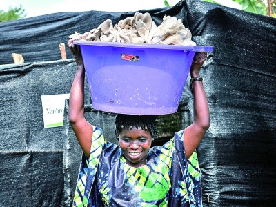 盧旺達南方省胡耶區(qū),采用中國菌草技術栽培的鮮菇喜獲豐收。新華社發(fā)