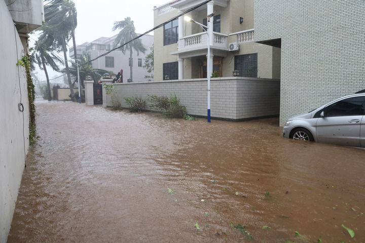 臺風“摩羯”導致海南部分地區(qū)出現(xiàn)洪澇。新華社記者 張麗蕓 攝