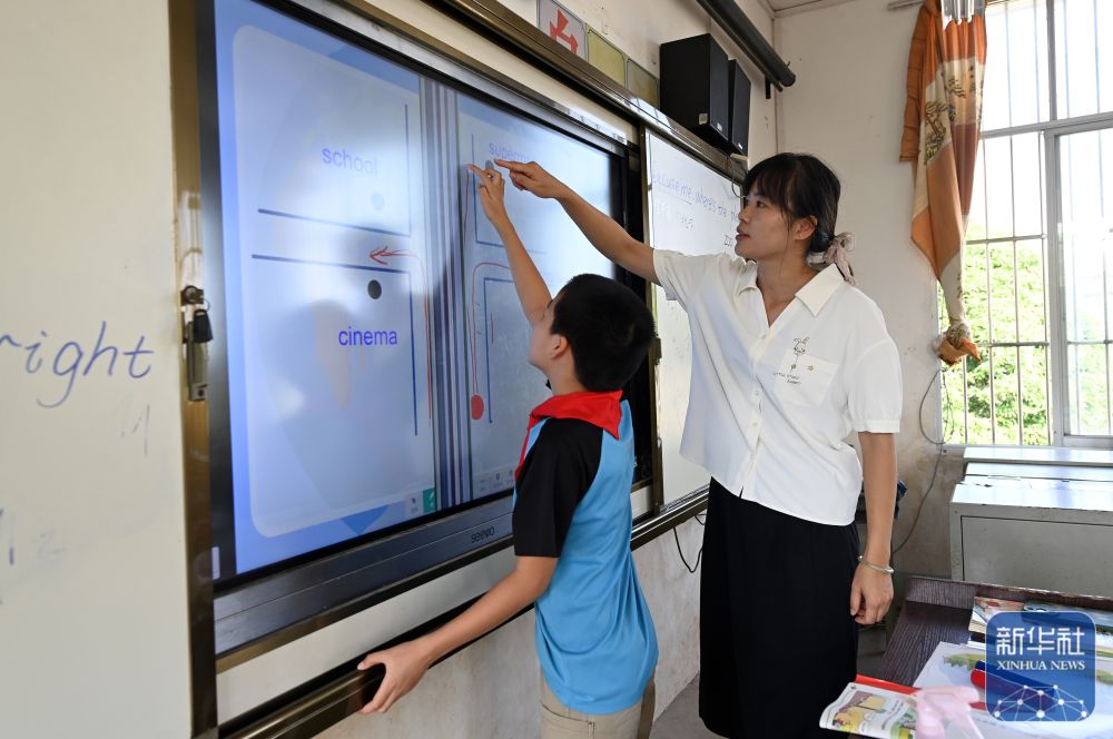 在廣西南寧市邕寧區(qū)中和鎮(zhèn)中心學校周祿教學點,“90后”老師何海香指導學生完成課堂作業(yè)(2024年9月4日攝)。