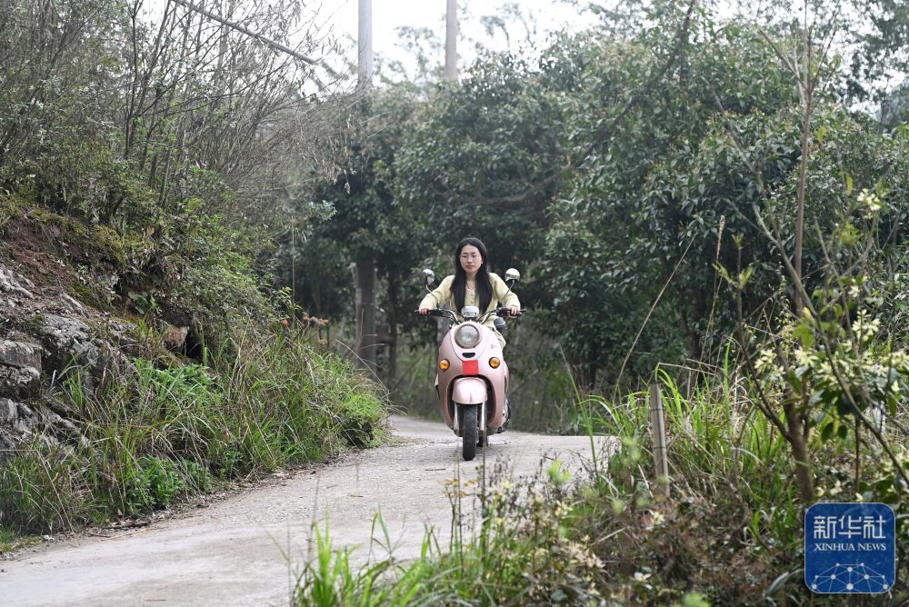在廣西灌陽縣洞井瑤族鄉(xiāng)野豬殿村,“95后”老師趙艷騎著電動自行車從學校回家(2024年3月27日攝)。