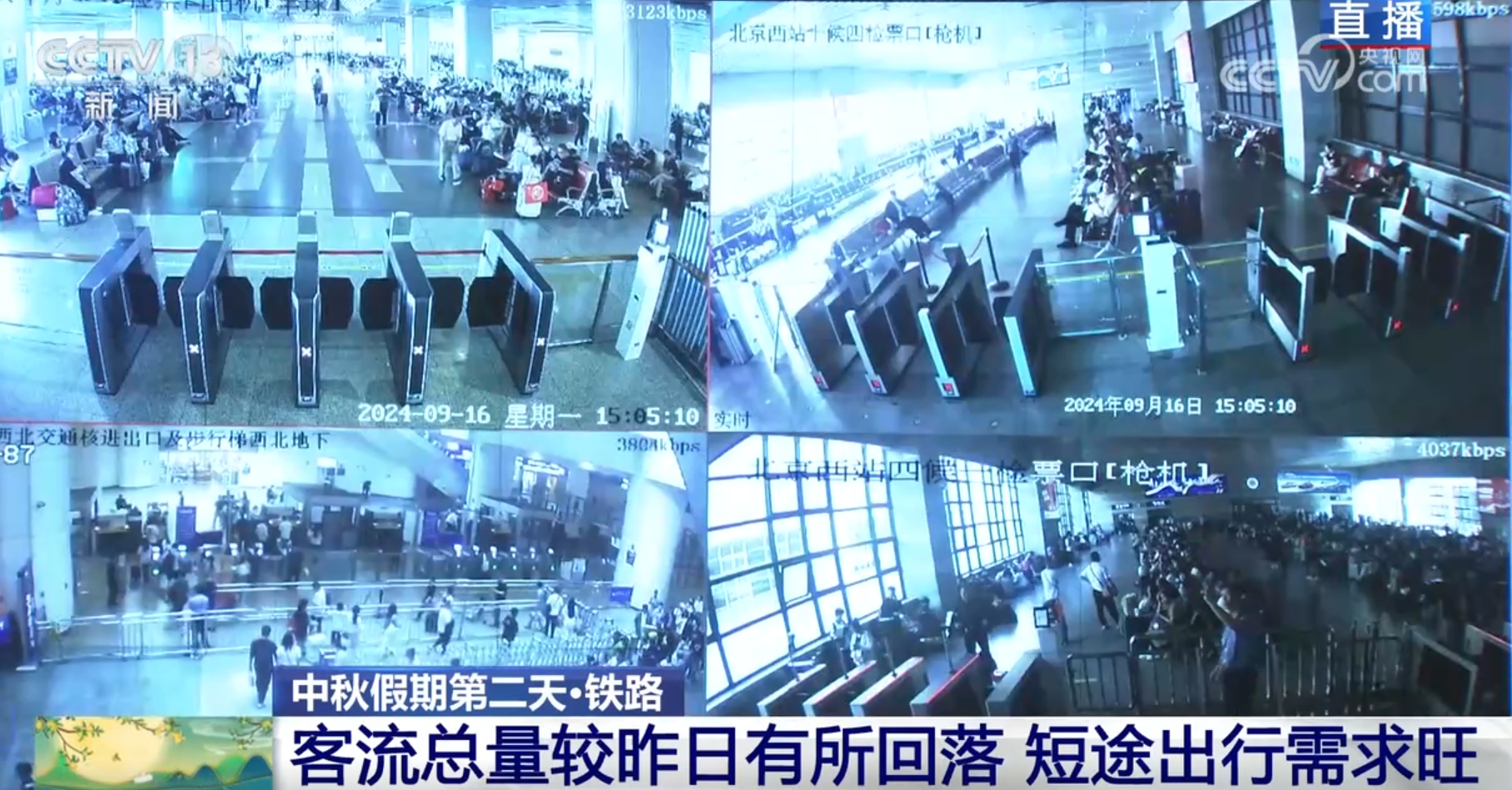 9月16日是中秋假期的第二天,哪些地方是大家的熱門出游地?先來看看鐵路出行。16日,鐵路出行客流以短途探親客流為主,預計發(fā)送旅客1180萬人次。16日鐵路短途出行需求旺盛,詳細情況,我們馬上連線正在國鐵集團運輸調(diào)度指揮大廳采訪的總臺央視記者楊麗君。