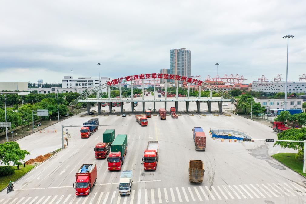 中國(guó)(廣西)自由貿(mào)易試驗(yàn)區(qū)欽州港片區(qū)(2024年5月20日攝,無人機(jī)照片)。新華社記者 曹祎銘 攝