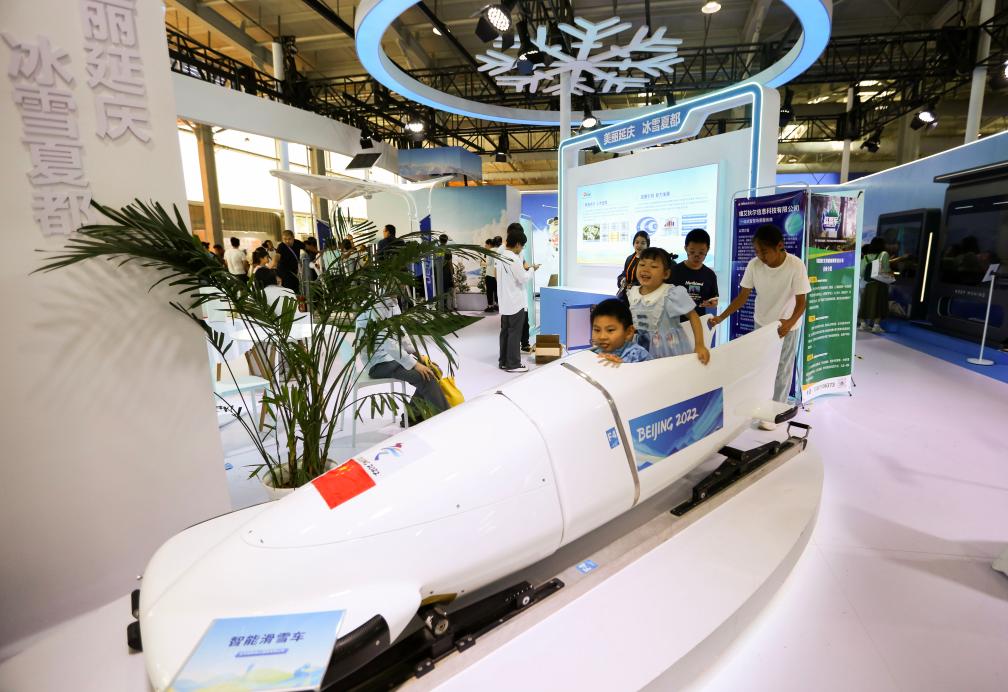 9月16日,在服貿(mào)會首鋼園區(qū),小朋友在“美麗延慶 冰雪夏都”展臺參觀體驗(yàn)。新華社記者 鄒廣萍 攝