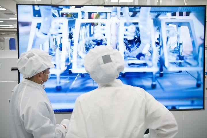 這是安徽華晟新能源科技股份有限公司的異質結光伏電池及組件工廠內景(8月24日攝)。