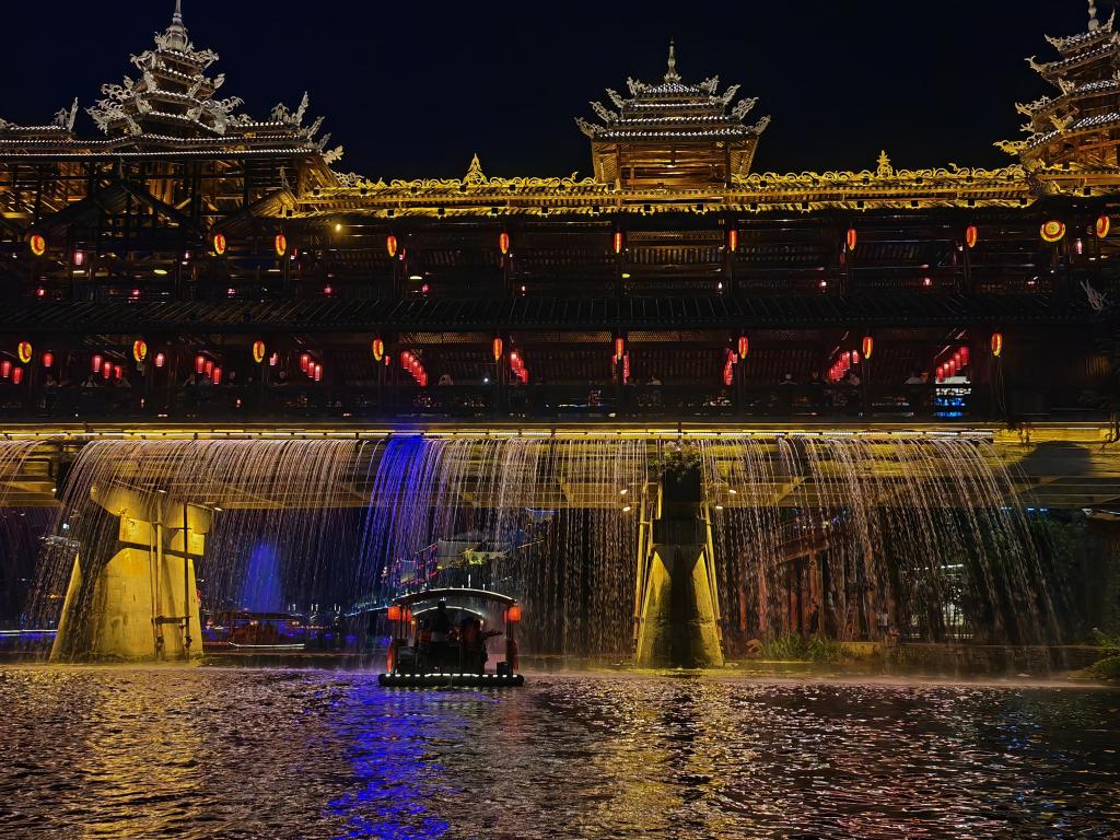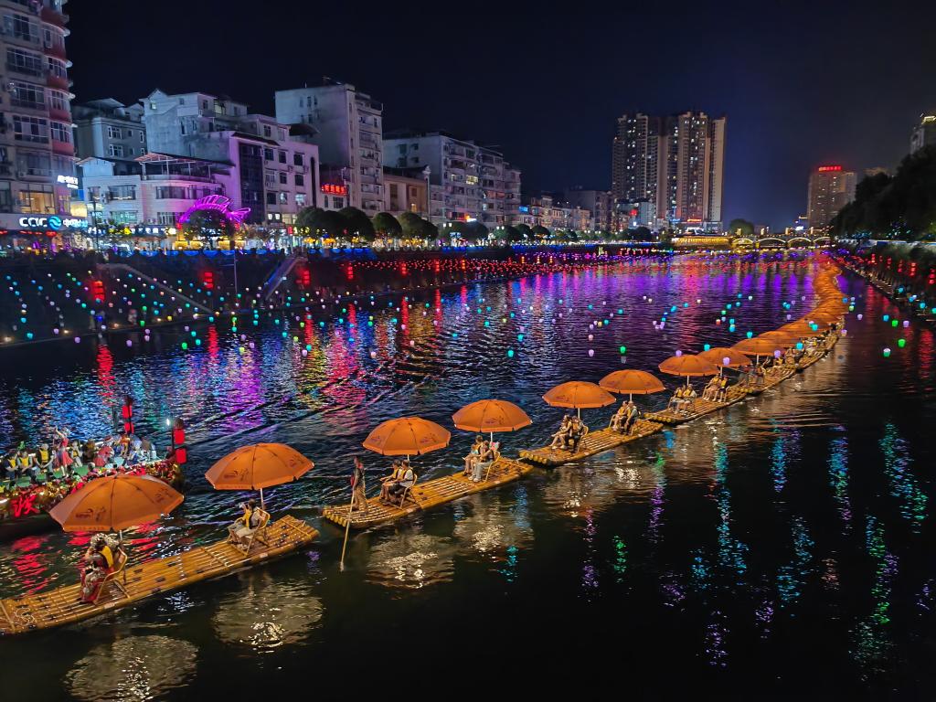 湖北宣恩,地處鄂西。一條河、兩條街,縣城的核心區(qū),是一個開放式的4A級景區(qū)。每當(dāng)夜幕降臨,這里就進(jìn)入了一天中最熱鬧的時段。波光粼粼的河面上,兩條“龍船”滿載游客,蜿蜒行進(jìn),街市上人頭攢動,香味撲面,一幅宛如“清明上河圖”的景象令人贊嘆。
