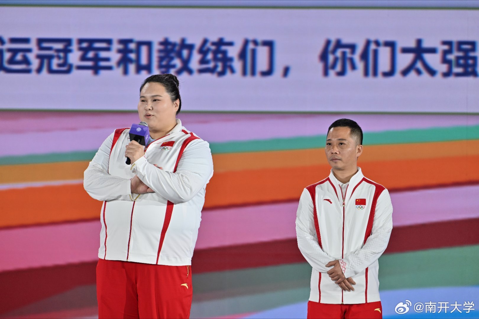 舉重運動員李雯雯和她的教練吳美錦。@南開大學 圖