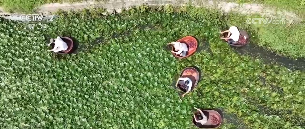 再到浙江慈溪市,看看紅菱采收上市的繁忙景象。