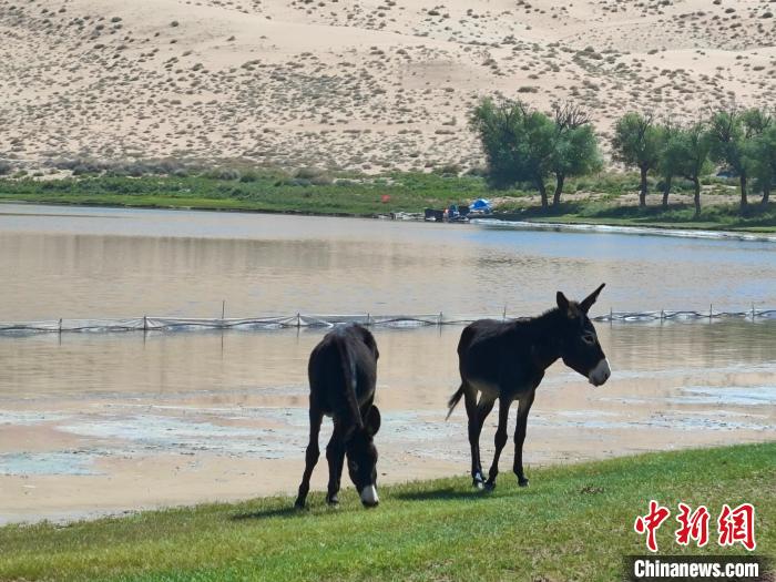 9月21日,巴丹吉林沙漠某處“海子”牧民放養(yǎng)的驢。中新社記者 陳溯 攝