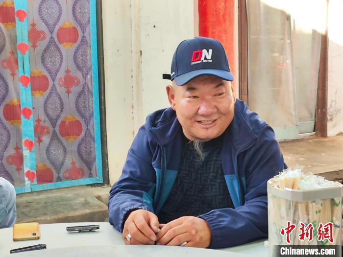 9月20日,阿拉善右旗雅布賴鎮(zhèn)嘎查牧民阿拉騰格日樂(lè)接受記者采訪。中新社記者 陳溯 攝