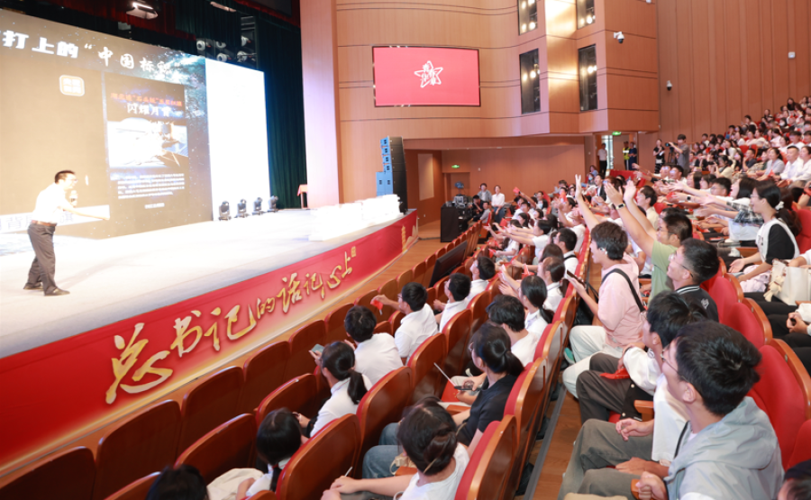 武漢紡織大學月面國旗研制團隊的一系列創(chuàng)新成果,生動詮釋了“追逐夢想、勇于探索、協(xié)同攻堅、合作共贏”的探月精神。正是這種迎難而上、勇攀高峰的精神,激勵著我國探月工程不斷穩(wěn)步向前,同時也深深激勵著現(xiàn)場學子:創(chuàng)新無止境!唯有奮斗無悔青春!