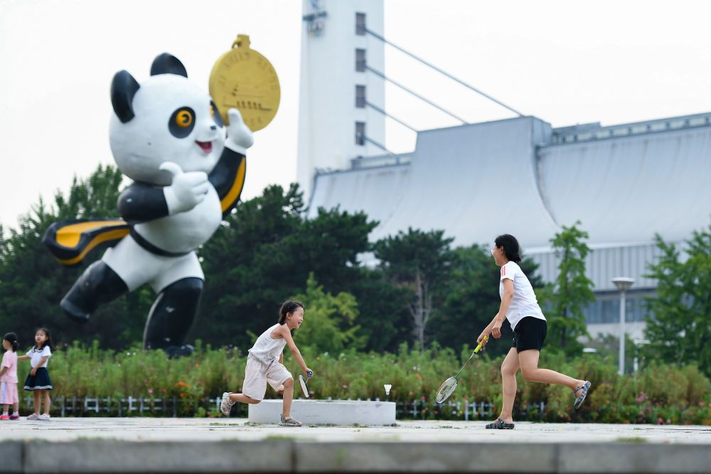 2023年8月20日,市民在位于北京的國家奧林匹克體育中心小廣場上打羽毛球。國家奧林匹克體育中心是我國第一個(gè)承辦大型綜合性國際體育賽事的體育場館群,為1990年北京亞運(yùn)會而建。新華社記者 陳鐘昊 攝