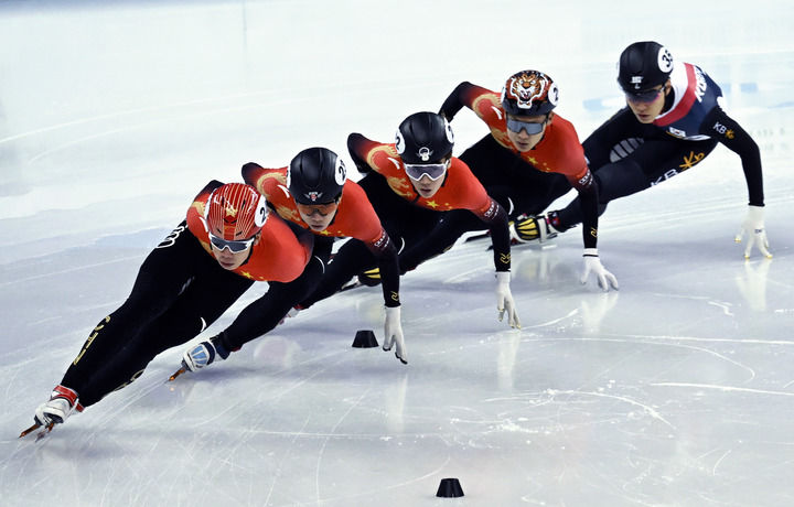 10月3日,朱祎玎、李坤、張柏浩(左一至左三)在比賽中。當日,在2024上海超級杯短道速滑男子1000米A組決賽中,中國選手朱祎玎以1分26秒848的成績獲得冠軍,李坤和張柏浩分獲亞軍和季軍。新華社發(fā)(陳浩明攝)