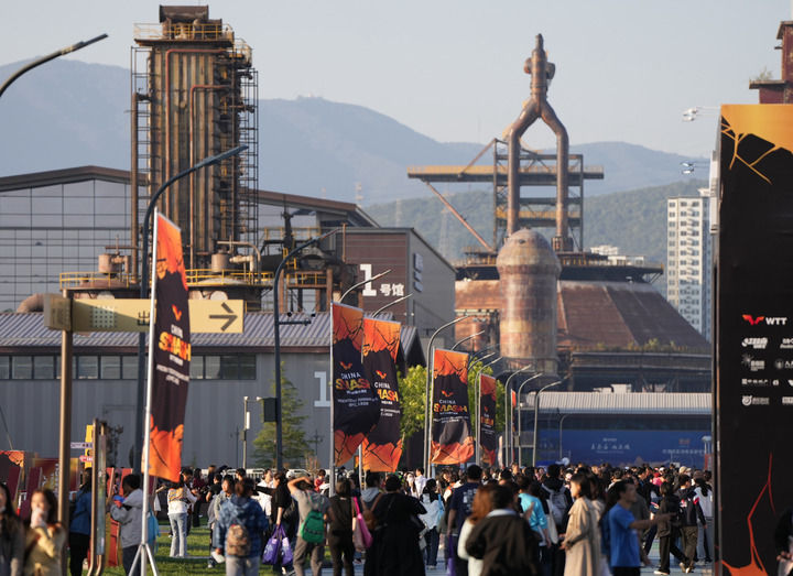 10月3日,游客來到首鋼園區(qū)參觀體驗世界乒乓球職業(yè)大聯(lián)盟(WTT)中國大滿貫賽帶來的各項活動。新華社記者 張晨霖 攝