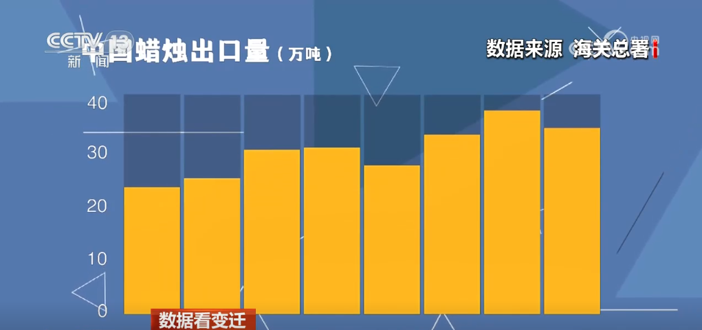 隨著電力普及,蠟燭在國內(nèi)逐漸淡出人們的視線,但卻在海外大放異彩。近10年來,我國蠟燭年度出口量邁過30萬噸關(guān)口,和中國綠茶一年的出口量相當(dāng)。中國蠟燭“漂洋過?!比ネ?60多個(gè)國家和地區(qū),穩(wěn)坐全球蠟燭貿(mào)易“頭把交椅”。國內(nèi)蠟燭相關(guān)企業(yè)增加到約1.02萬家,近50%的企業(yè)成立于10年之內(nèi),傳統(tǒng)的蠟燭產(chǎn)品向高附加值邁進(jìn)。
