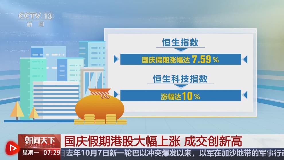 央視網(wǎng)消息:國慶假期,A股休市,但是港股的表現(xiàn)十分亮眼。港股市場10月1日休市一天,在10月2日到10月4日交投活躍,成交量創(chuàng)歷史新高,吸引了全球投資者目光。