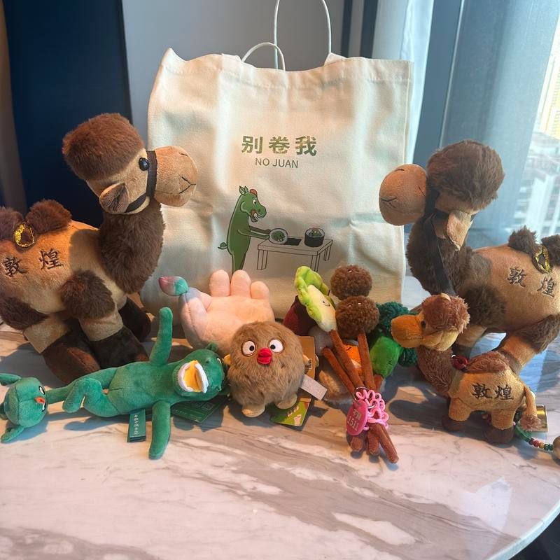 “綠馬”的原型是該館鎮(zhèn)館之寶“銅奔馬”,而“麻辣燙”玩偶則是結(jié)合了甘肅天水麻辣燙的特點?!斑@些都極富當(dāng)?shù)靥厣?,很有代表性,跟其他地方的文?chuàng)都不一樣?!绷尉S多說。