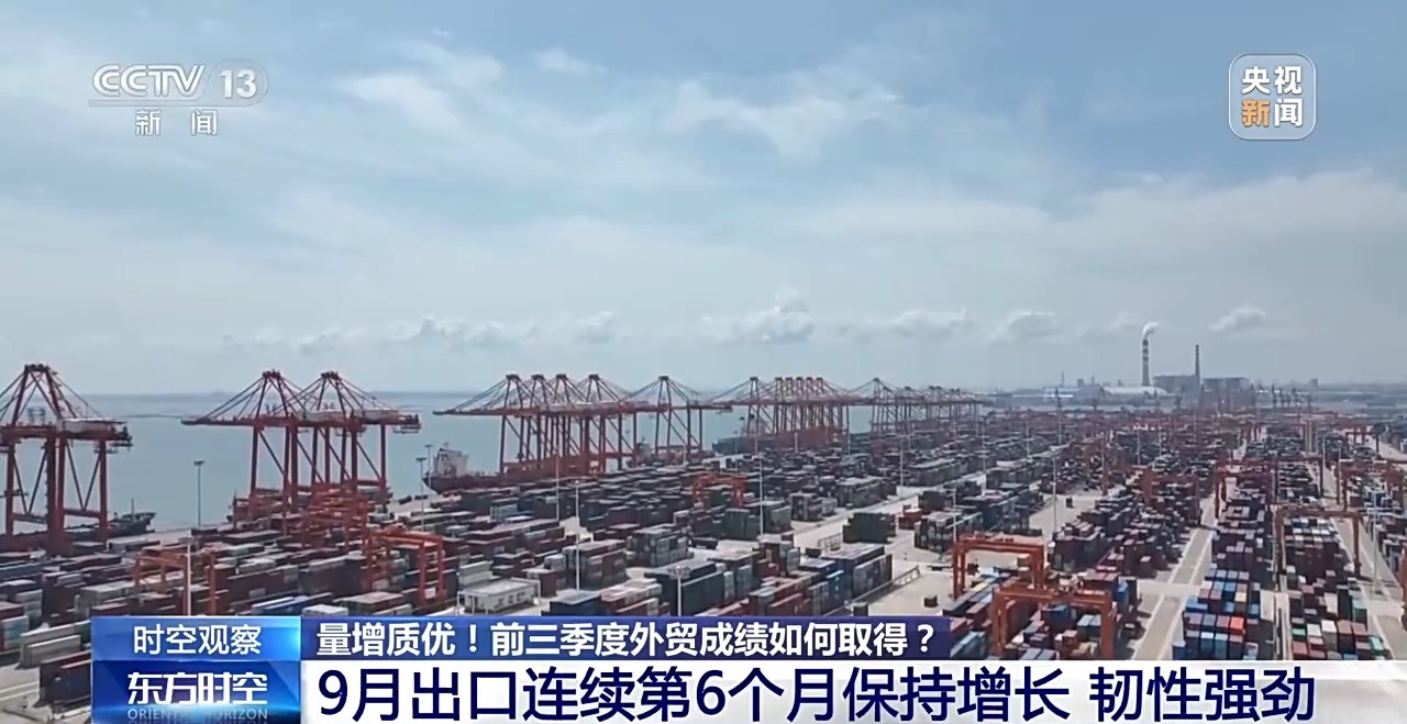 從前三季度的整體來(lái)看,9月份出口連續(xù)第6個(gè)月保持了增長(zhǎng),前三季度累計(jì)出口規(guī)模達(dá)到了18.62萬(wàn)億元,創(chuàng)歷史同期新高,同比增長(zhǎng)了6.2%,這個(gè)增速比最近10年同期的平均增速高了0.5個(gè)百分點(diǎn)。