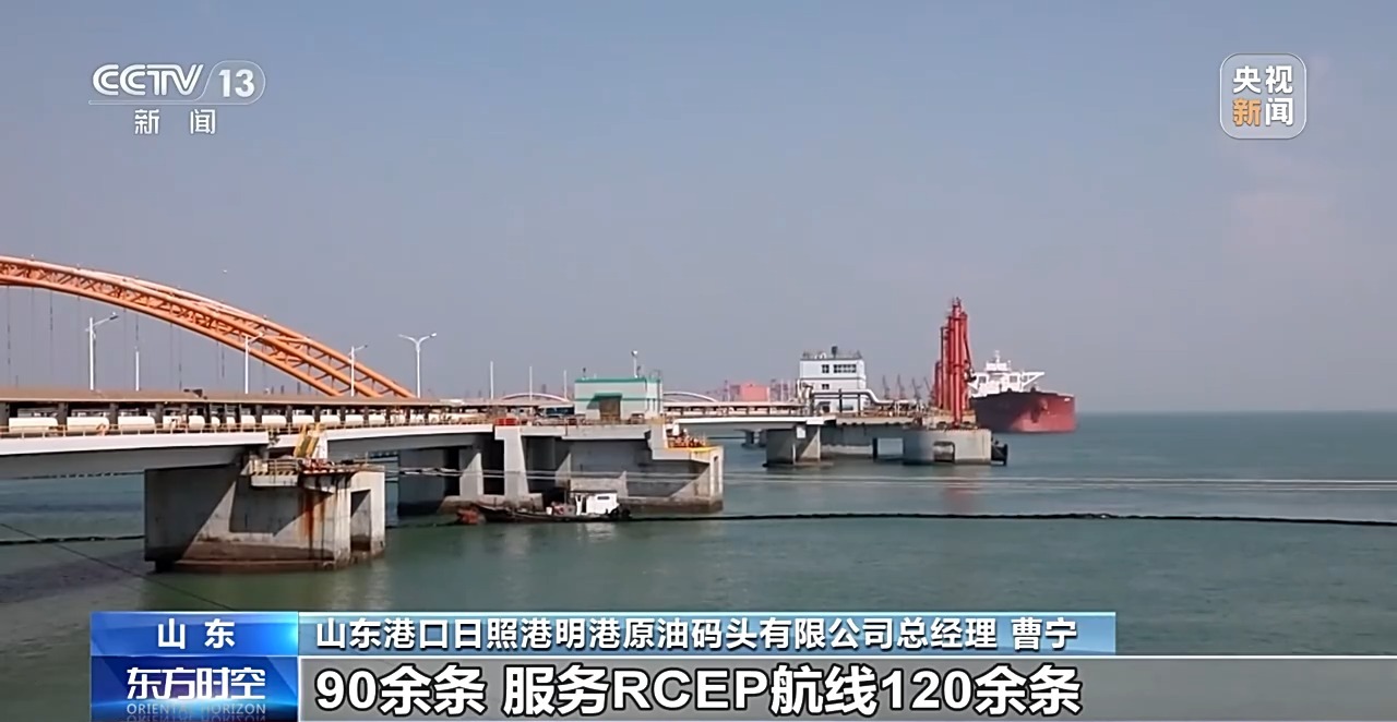 山東港口日照港明港原油碼頭有限公司總經(jīng)理 曹寧:目前有面向共建“一帶一路”國(guó)家航線90余條、服務(wù)RCEP航線120余條,為我國(guó)北方貿(mào)易通達(dá)全球提供重要助力。