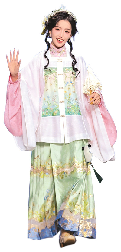 “除馬面裙外,目前市面上由宋制服裝中的褙子改良而來的服裝樣式也很受歡迎,明制服裝中的立領(lǐng)則被大量應(yīng)用于新中式服裝?!贝饔昵缯f,如今的漢服已兼具傳統(tǒng)文化和流行時(shí)尚的雙重屬性。