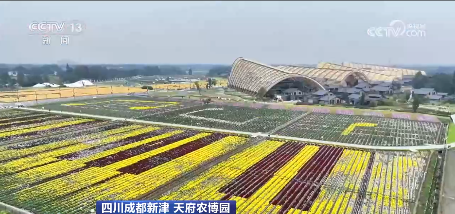 四川成都新津天府農(nóng)博園里,紫黑、紫紅、金黃三種特種稻種和大田水稻一起組成多彩圖案和造型,每畝預(yù)計(jì)產(chǎn)量躍上800斤的新高。稻田邊創(chuàng)意涌動(dòng),一杯杯稻田咖啡香醇四溢,一朵朵葵花正在向陽綻放,悠然演奏著喜悅豐收的“大地樂章”。