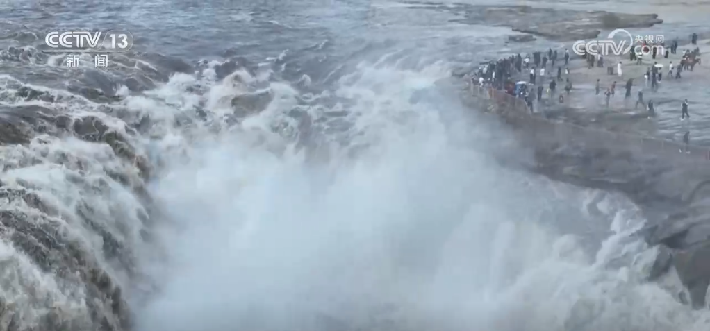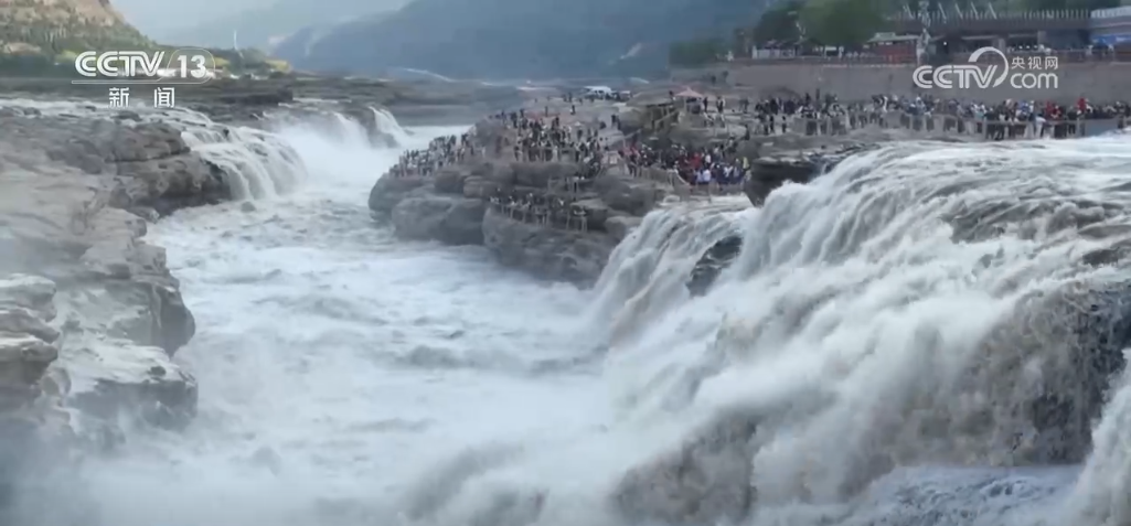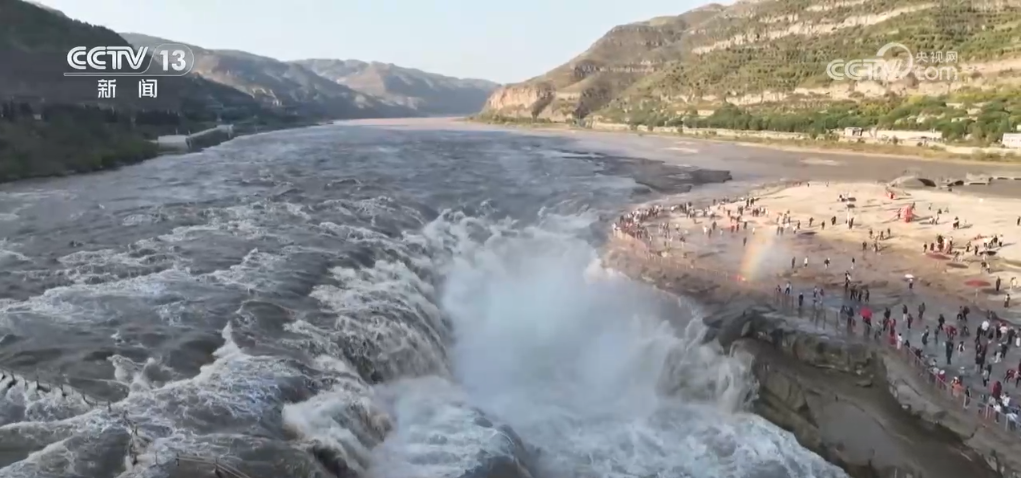 連日來(lái),受上游水庫(kù)調(diào)節(jié)放水影響,位于山西吉縣和陜西宜川縣交界的黃河壺口瀑布水量豐沛。從空中俯瞰,黃河流經(jīng)晉陜峽谷到達(dá)壺口,水面由三四百米寬驟然收縮為50多米,再墜入“十里龍槽”,濺起數(shù)十米高的水霧,氣勢(shì)磅礴。據(jù)了解,黃河壺口段目前正處于秋汛期,最大水流量約為1300立方米/秒,是日常水流量的3倍,主瀑與副瀑連成一片,呈現(xiàn)出一條線狀,場(chǎng)面壯觀。進(jìn)入10月份以來(lái),黃河壺口瀑布景區(qū)日均接待游客超過(guò)2萬(wàn)人次。