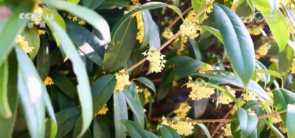 除了園中賞花,城區(qū)也迎來了桂花盛宴。在四川瀘州市豐樂鎮(zhèn),大街小巷桂花陸續(xù)盛開,悠悠花香彌漫。金黃的桂花如繁星點綴著綠葉。游客們在桂花樹下觀賞、拍照,靜享悠閑時光。今年,由于氣候等原因,這里的桂花盛開較往年稍晚一些,目前已有丹桂、月桂等品種開放。