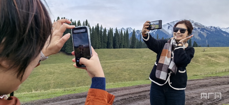第二次來到庫爾德寧的李明站在草原之上、雪山之下、云杉之中,舉起相機拍個不停?!靶陆木吧挥心阏嬲驹谶@里了,用自己的眼睛看到,你就會覺得什么是美好,無法用語言去形容的美,直抵心靈的美?!崩蠲髡f,雖然他是第二次來,但和第一次來時看到的風(fēng)景又不一樣了,新疆真是一年四季都會有不同的景色,任何時候來都非常值得,不虛此行。