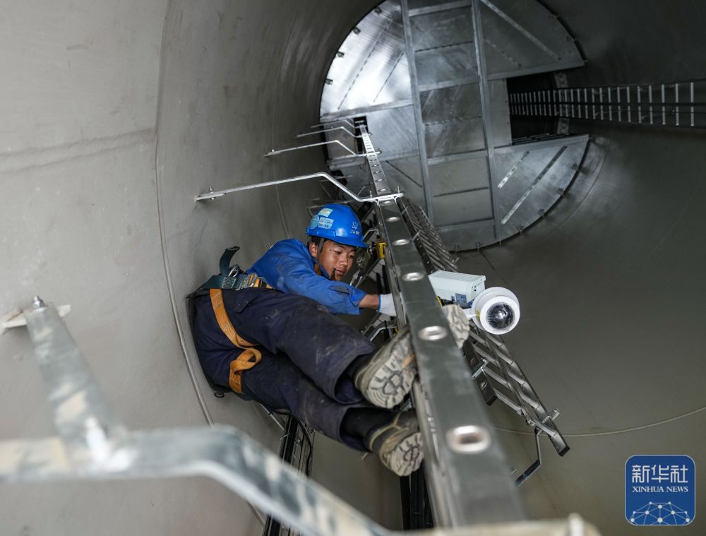 10月17日,工作人員在檢修風(fēng)機(jī)內(nèi)部的監(jiān)控設(shè)備。