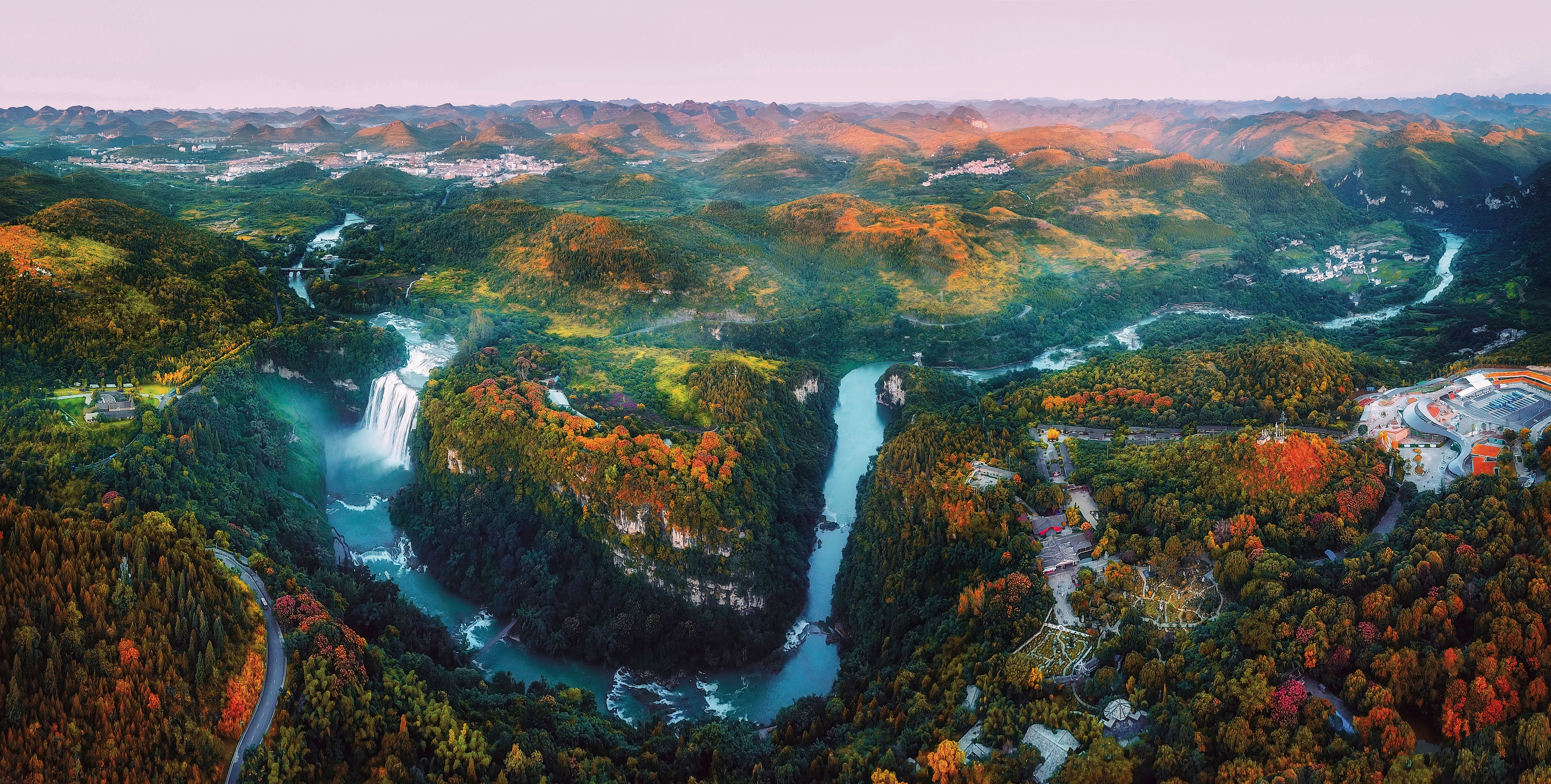 黃果樹大瀑布全景航拍圖。 楊明亮 攝