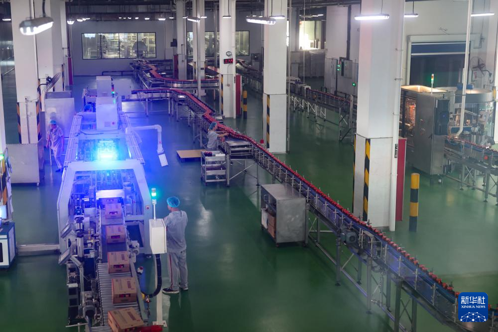 生產(chǎn)線上,一排排清亮的空玻璃瓶整齊行進(jìn),經(jīng)自動灌裝、旋蓋、貼標(biāo)簽、裝箱,再經(jīng)智能傳感器識別,機(jī)器人碼垛,整齊擺放到如鋼鐵森林般的立體倉庫……