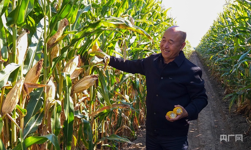 玉米豐收,內(nèi)蒙古“種糧狀元”馬忠臣喜上眉梢(央廣網(wǎng)見習記者 楊亞東 攝)