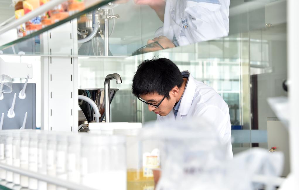 一名工作人員在青島明月海藻集團(tuán)的實(shí)驗(yàn)室內(nèi)工作。新華社記者 徐速繪 攝