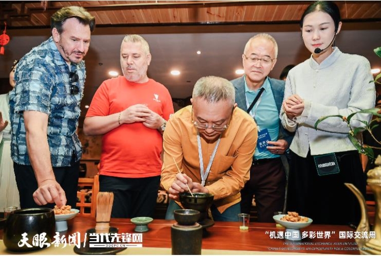 打卡“天下第一壺”景觀,參訪團層層爬樓,領(lǐng)略“壺中”的每一處風(fēng)情,體驗茶道茶藝,欣賞茶山茶歌,真可謂是“茶里乾坤大,壺中日月長”。
