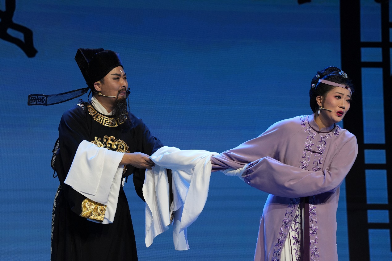 在本次節(jié)目展演中,由合肥演藝集團(tuán)到來(lái)的相聲《廬韻包公》也贏得了觀眾的喜愛(ài)。該故事以包公鍘美案為主線,兩位相聲表演者從京劇唱腔引出廬劇表演,展現(xiàn)了包公的智慧和正義,讓觀眾在歡聲笑語(yǔ)中感悟到傳統(tǒng)相聲的魅力所在。