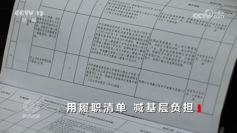 央視網(wǎng)消息(焦點(diǎn)訪談):“上面千條線,底下一根針”,人們經(jīng)常用這句話來描述鄉(xiāng)鎮(zhèn)干部的基層工作狀況。也有人用“小馬拉大車”形象地描述基層干部在實際工作中所面臨的滿負(fù)荷狀態(tài)。為了減輕基層負(fù)擔(dān),2024年8月,中共中央辦公廳、國務(wù)院辦公廳印發(fā)《整治形式主義為基層減負(fù)若干規(guī)定》,其中明確提出,要規(guī)范明晰基層權(quán)責(zé),建立健全職責(zé)清單。那么,目前基層權(quán)責(zé)明晰做得如何呢?