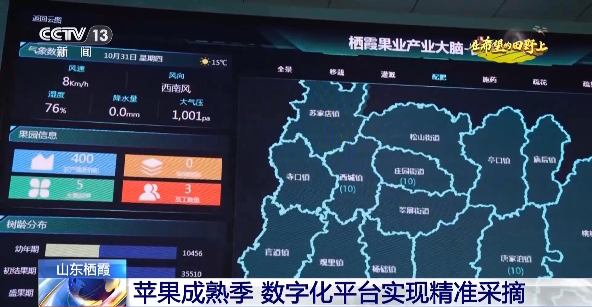 棲霞市供銷合作社聯(lián)合社負(fù)責(zé)人 李國(guó)勇:通過這個(gè)大屏,我們可以清楚地看到果樹的生長(zhǎng)情況,平臺(tái)也會(huì)將果樹生長(zhǎng)情況相關(guān)信息通報(bào)給果農(nóng)進(jìn)行精準(zhǔn)采摘。