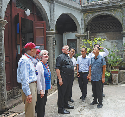 飛虎隊(duì)代表團(tuán)成員參觀飛虎隊(duì)在福建長汀的駐扎地黃氏麗園。