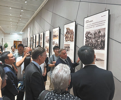 中美嘉賓在湖南長沙博物館參觀飛虎隊(duì)主題歷史圖片展。