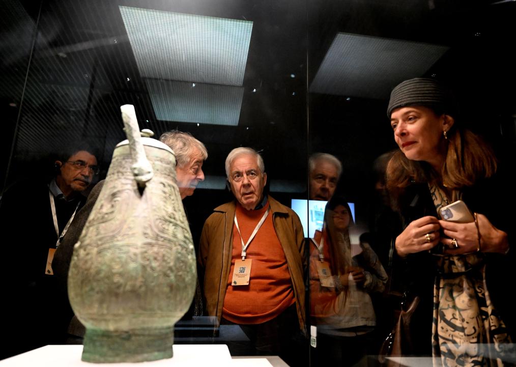 11月4日,外賓在河南博物院參觀。新華社記者 李嘉南 攝