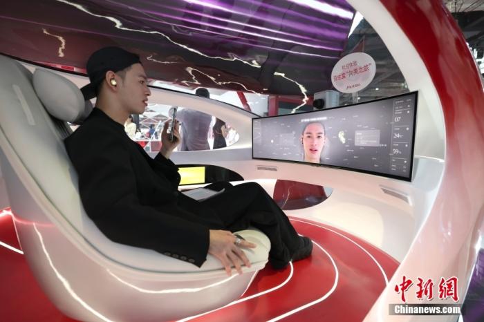 11月6日,參觀者在消費品展區(qū)資生堂展位“美時美刻”體驗艙檢測膚質。第七屆中國國際進口博覽會于11月5日至10日在上海舉行。中新社記者 富田 攝