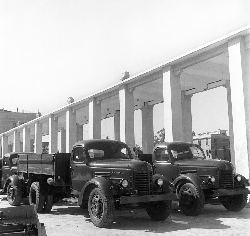 1957年,首屆廣交會(huì)上展出的解放牌汽車(chē)。新華社發(fā)