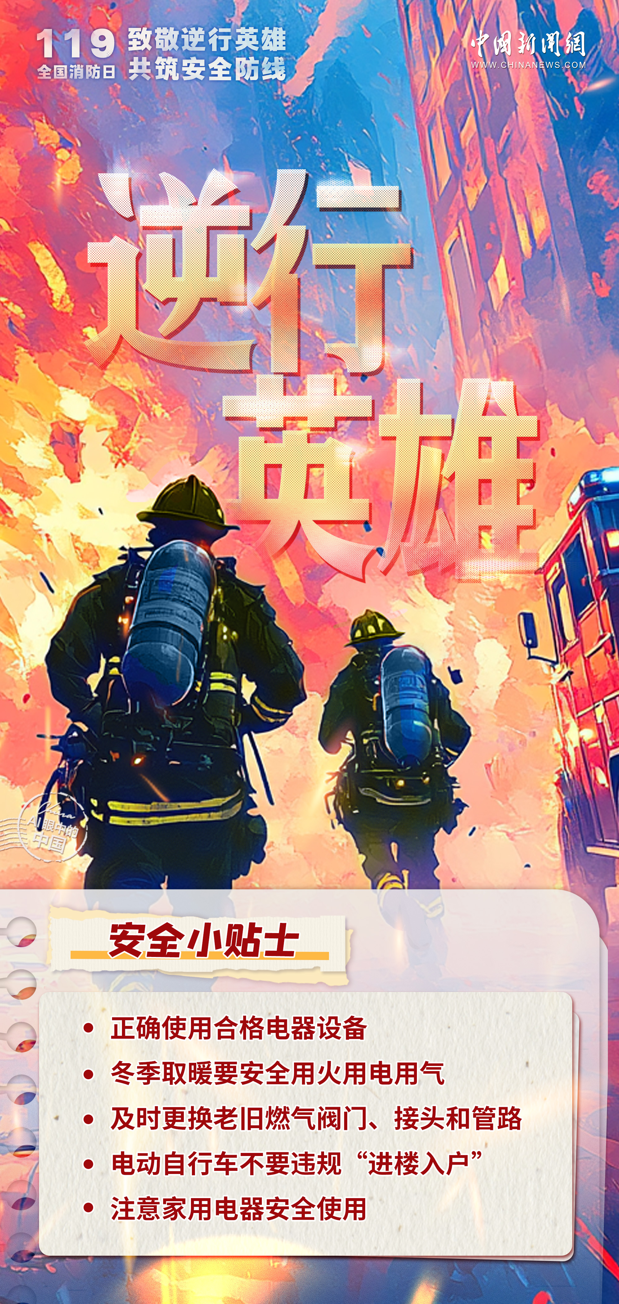 他們是逆火而行的英雄,是守護(hù)生命與財產(chǎn)的無畏戰(zhàn)士。無論是城市的高樓,還是偏遠(yuǎn)的山林,只要火警一響,消防員們就義無反顧地沖向危險的前線,用汗水和熱血詮釋著責(zé)任與擔(dān)當(dāng)。今天是第33個全國消防日,讓我們一起致敬人民安全守護(hù)者,共筑消防安全墻。