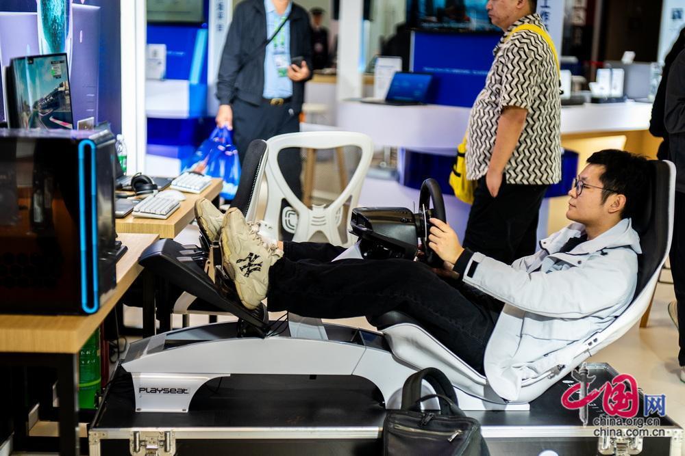 展區(qū)體驗(yàn)?zāi)M駕駛游戲。中國網(wǎng)記者
