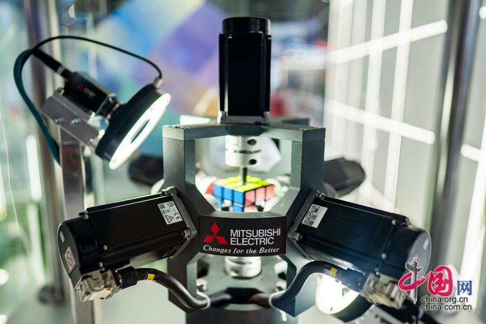 三菱帶來的魔方機(jī)器人,該機(jī)器人曾打破魔方復(fù)原吉尼斯世界紀(jì)錄。中國網(wǎng)記者
