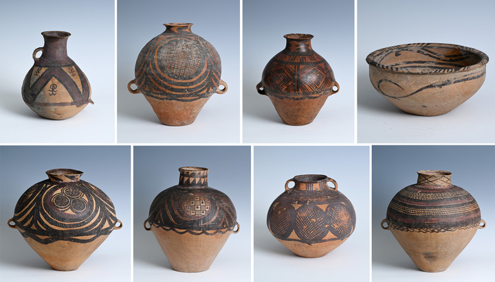 意大利返還中國的新石器時代馬家窯彩陶器(11月5日攝,拼版照片)。新華社記者 李賀 攝
