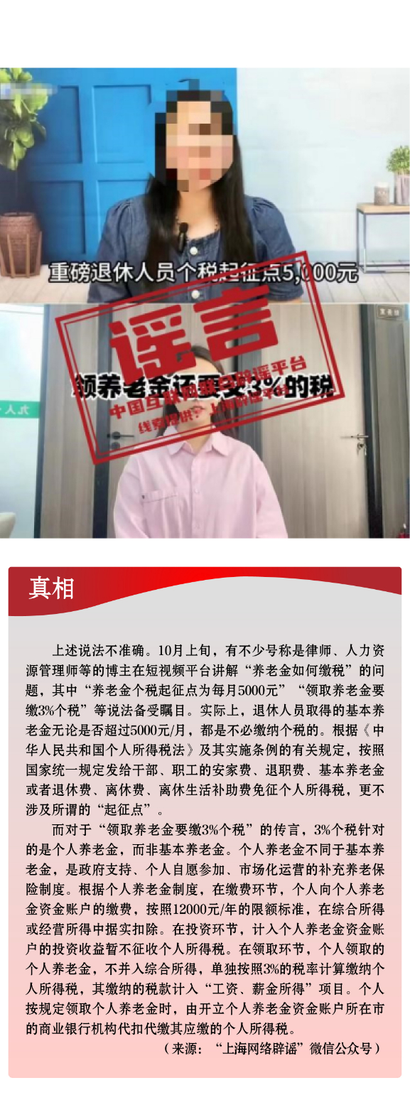 領取養(yǎng)老金要繳3%個稅,起征點5000元/月?