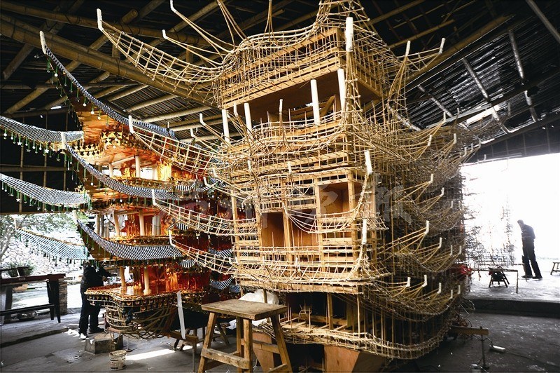 做“首飾龍”的匠人,沒有圖紙,全憑師傅一生的經(jīng)驗(yàn)來規(guī)劃不同船型和運(yùn)動方式。林順奎制作的首飾龍身上有大大小小80多個樓閣、亭臺,濃縮了《封神榜》《西游記》等80多出戲,有近300個形態(tài)各異、從事各行各業(yè)的古今人物。