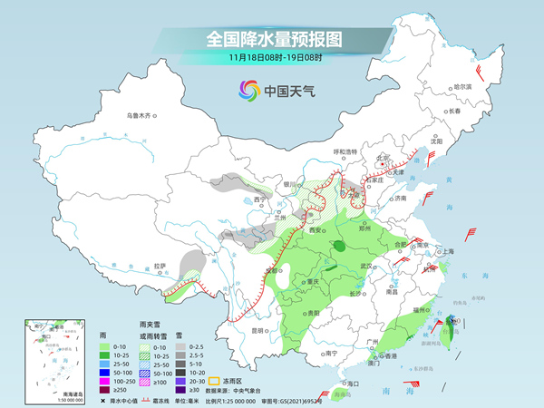 具體來看,中央氣象臺預計,今天,內(nèi)蒙古河套地區(qū)、西藏東北部、青海北部和東南部、川西高原北部、甘肅河西和南部、寧夏大部、陜西中北部、山西中南部等地部分地區(qū)有小到中雪或雨夾雪。陜西南部、河南大部、安徽西部、湖北中西部、湖南北部、四川盆地、重慶、貴州大部、云南東部、福建東部和南部、廣東東部、海南島、臺灣島等地部分地區(qū)有小到中雨,其中,臺灣島東北部等地部分地區(qū)有大到暴雨。